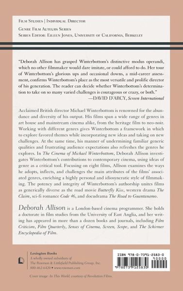 The Cinema of Michael Winterbottom, by Deborah Allison, examines eight films by the contemporary British director Michael Winterbottom. This study explores the ways his inflection of established genre traditions partake in a personal, idiosyncratic style of film-making. Across a career encompassing both mainstream and art house cinema, the potency and integrity of his authorship unites films as generically diverse as the road film Butterfly Kiss, western drama The Claim, science fiction movie Code 46, and docudrama The Road to Guantanamo.