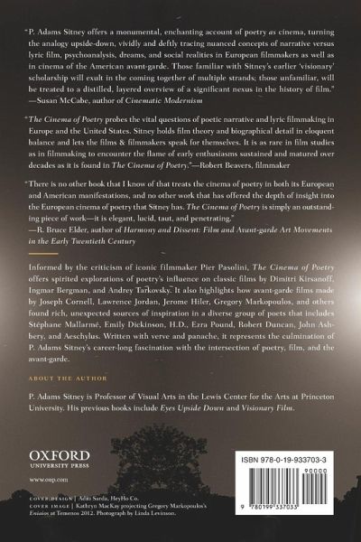 Informed by the criticism of iconic filmmaker Pier Pasolini, The Cinema of Poetry offers spirited explorations of poetry's influence on classic films by Dimitri Kirsanoff, Ingmar Bergman, and Andrey Tarkovsky. It also highlights how avant-garde films made by Joseph Cornell, Lawrence Jordan, Jerome Hiler, Gregory Markopoulos, and others found rich, unexpected sources of inspiration in a diverse group of poets that includes Stephane Mallarme, Emily Dickinson, H.D., Ezra Pound, Robert Duncan, John Ashbery, and Aeschylus. Written with verve and panache, it represents the culmination of P. Adams Sitney's career-long fascination with the intersection of poetry, film, and the avant-garde.