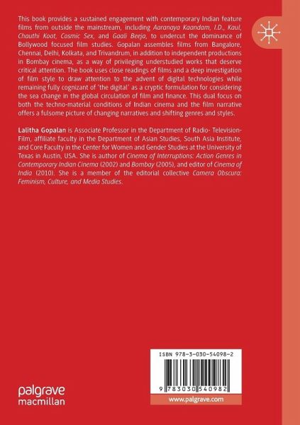 This book provides a sustained engagement with contemporary Indian feature films from outside the mainstream, including Aaranaya Kaandam, I.D., Kaul, Chauthi Koot, Cosmic Sex, and Gaali Beeja, to undercut the dominance of Bollywood focused film studies. Gopalan assembles films from Bangalore, Chennai, Delhi, Kolkata, and Trivandrum, in addition to independent productions in Bombay cinema, as a way of privileging understudied works that deserve critical attention. The book uses close readings of films and a deep investigation of film style to draw attention to the advent of digital technologies while remaining fully cognizant of 'the digital' as a cryptic formulation for considering the sea change in the global circulation of film and finance. This dual focus on both the techno-material conditions of Indian cinema and the film narrative offers a fulsome picture of changing narratives and shifting genres and styles.