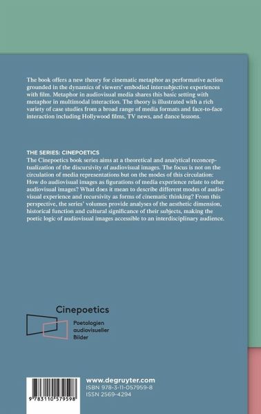 Metaphors in audiovisual media receive increasing attention from film and communication studies as well as from linguistics and multimodal metaphor research. The specific media character of film, and thus of cinematic metaphor, remains, however, largely ignored. Audiovisual images are all too frequently understood as iconic representations and material carriers of information. Cinematic Metaphor proposes an alternative: starting from film images as affective experience of movement-images, it replaces the cognitive idea of viewers as information-processing machines, and heals the break with rhetoric established by conceptual metaphor theory. Subscribing to a phenomenological concept of embodiment, a shared vantage point for metaphorical meaning-making in film-viewing and face-to-face interaction is developed. The book offers a critique of cognitive film and metaphor theories and a theory of cinematic metaphor as performative action of meaning-making, grounded in the dynamics of viewers' embodied experiences with a film. Fine-grained case studies ranging from Hollywood to German feature film and TV news, from tango lesson to electoral campaign commercial, illustrate the framework's application to media and multimodality analysis.
