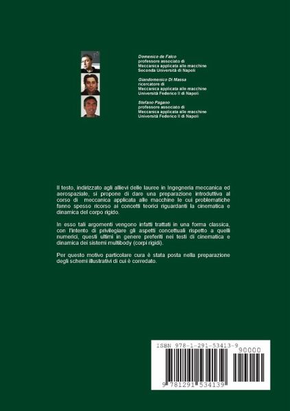 Il testo si propone di dare una preparazione introduttiva al corso di meccanica applicata alle macchine le cui problematiche fanno spesso ricorso ai concetti teorici riguardanti la cinematica e dinamica del corpo rigido. In esso tali argomenti vengono infatti trattati in una forma classica, con l'intento di privilegiare gli aspetti concettuali rispetto a quelli numerici, questi ultimi in genere preferiti nei testi di cinematica e dinamica dei sistemi multibody (corpi rigidi).