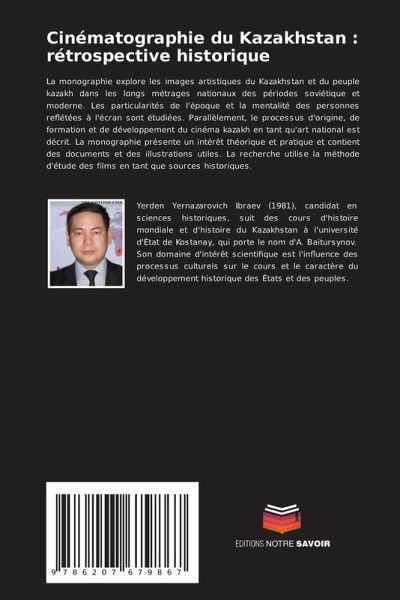 La monographie explore les images artistiques du Kazakhstan et du peuple kazakh dans les longs métrages nationaux des périodes soviétique et moderne. Les particularités de l'époque et la mentalité des personnes reflétées à l'écran sont étudiées. Parallèlement, le processus d'origine, de formation et de développement du cinéma kazakh en tant qu'art national est décrit. La monographie présente un intérêt théorique et pratique et contient des documents et des illustrations utiles. La recherche utilise la méthode d'étude des films en tant que sources historiques.