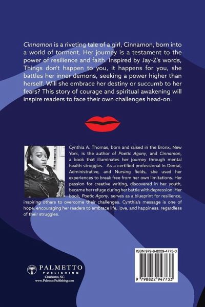 From Hell's Depths to Heavenly Heights: A Tale of Courage, Strength, and Spiritual Awakening Amidst Life's Demonic Challenges. Will She Triumph or Succumb? In the heart of the narrative lies Cinnamon, a girl born into a world of torment and besieged by malevolent forces. Her story is not just one of bravery, but a testament to the human spirit's relentless pursuit of a power beyond her own. It's a journey that explores the profound trust in the universe's creator to deliver on all promises made. Cinnamon's tale is a vivid illustration of the infamous rapper Sean Carter, better known as "Jay-Z", who once said, "Things don't happen to you, it happens for you". This quote resonates deeply with her, becoming a mantra that fuels her resilience and determination. It's a story that questions whether she will embrace her destiny or be consumed by her inner demons. This book delves into the depths of despair, yet it also ascends to the heights of hope. It's a narrative that showcases the power of faith, the strength of the human spirit, and the courage to face one's fears head-on. It's a tale that reminds us that even in the darkest of times, there is always a glimmer of light, a beacon of hope, a path to a higher power. Cinnamon's journey is a testament to the power of resilience, the importance of faith, and the indomitable spirit of the human will. It's a story that will inspire, motivate, and challenge readers to look beyond their circumstances and believe in the power of the universe to deliver on its promises. In the end, Cinnamon's story is not just about survival, but about thriving amidst adversity. It's about finding the strength to face one's demons, the courage to pursue a higher power, and the faith to believe in the promises of the universe. It's a story that will resonate with readers, inspire them to face their own challenges, and remind them that things don't just happen to them, they happen for them.