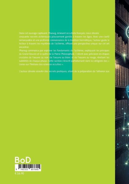 Georges Descormiers, plus connu sous le pseudonyme de Phaneg, est une figure fascinante du monde ésotérique français de la fin du XIXe et du début du XXe siècle. Né en 1866 et décédé en 1945, il s'impose comme l'un des plus éminents occultistes de son époque, laissant derrière lui un héritage riche et mystérieux. Phaneg développe très tôt un intérêt profond pour l'ésotérisme et les sciences occultes. Il consacre sa vie à l'étude et à la pratique des arts hermétiques, cherchant à en percer les secrets et à en révéler la sagesse cachée. Son oeuvre, dont ' Cinquante merveilleux secrets d'alchimie ', témoigne de sa vaste connaissance et de sa capacité à rendre accessibles des concepts ésotériques complexes. Au-delà de ses activités d'écrivain, Phaneg s'engage activement dans la diffusion des connaissances ésotériques. En 1932, il fonde l'' Entente amicale évangélique ', une organisation dédiée à l'étude et à la pratique de l'occultisme. Ses enseignements attirent de nombreux disciples, contribuant à raviver l'intérêt pour l'alchimie et les sciences occultes au début du XXe siècle. L'influence de Phaneg sur l'étude de l'alchimie et de l'ésotérisme est considérable. Ses écrits, notamment ' Cinquante merveilleux secrets d'alchimie ', ont ouvert la voie à une compréhension plus profonde et plus nuancée de l'art hermétique. Sa vision d'une alchimie à la fois pratique et spirituelle continue d'inspirer les chercheurs et les praticiens contemporains. Aujourd'hui, l'oeuvre de Phaneg connaît un regain d'intérêt parmi les passionnés d'alchimie et d'ésotérisme. Sa capacité à jeter des ponts entre la tradition hermétique et la pensée moderne en fait une référence incontournable pour quiconque cherche à comprendre la richesse et la profondeur de l'alchimie et de l'occultisme.