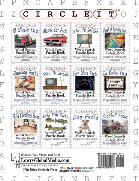 Love that great summertime beach music from the Beach Boys. When a Beach Boys song is played, which old girlfriend or boyfriend comes to mind? "Circle It" word search books read like a book and are full of interesting facts, the bold words within the text can be found in the word search puzzle on the opposite page. UPGRADE your word search and be the one everyone wants to talk with; your friends will wonder, how did you get so smart? Everyone will really enjoy your conversation when you say, "The other day I was reading and did you know that...." Typical word searches are just dull lists of words, "Circle It" word search books read like a book and are full of interesting facts. Each "Circle It" word search book has an interesting subject, like: * Muscle Car Facts * Quilting Facts * Lake Fish Facts * Dog Facts * Cat Facts * Hockey Facts * ...many many more (200+ titles) Lowry Global Media, Circle It Word Search Books are all available from your favorite online bookseller. Just search for "Lowry Global Media" to see all of our word search titles. Looking for a gift? Our books are great for anyone ages 12 to 99.