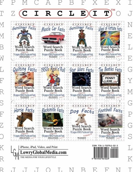 Discover interesting facts and do a fun word search about Old West Gunslingers like Bob Dalton, Emmett Dalton, Wyatt Earp, and Wild Bill Hickok. BookSideHustle was created with the intention of empowering everyday people with their own Circle It, Word Search Puzzle books that are created from their own ideas. This book was created for Madison; she is a single Mom of two children. During the day Madison works as the Shipping Department Manager for a manufacturing company. Like many people, she grinds out her hours every week so that she can do the best she can for her children. For each book sold, with Madison's name on it, she makes some great BookSideHustle money to help make ends meet. Madison, ever since she was a little girl, has had a great love of horses. Madison's other books include: Blacksmith Facts, American Frontier Facts, and Gunslinger Facts. "Circle It" word search books read like a book and are full of interesting facts, the bold words within the text can be found in the word search puzzle on the opposite page. UPGRADE your word search and be the one everyone wants to talk with; your friends will wonder, how did you get so smart? Everyone will really enjoy your conversation when you say, "The other day I was reading and did you know that...." Typical word searches are just dull lists of words, "Circle It" word search books read like a book and are full of interesting facts. Each "Circle It" word search book has an interesting subject, like: * Muscle Car Facts * Quilting Facts * Lake Fish Facts * Dog Facts * Cat Facts * Hockey Facts * ...many many more (200+ titles) Lowry Global Media, Circle It Word Search Books are all available from your favorite online bookseller. Just search for "Lowry Global Media" to see all of our word search titles. Looking for a gift? Our books are great for anyone ages 12 to 99.