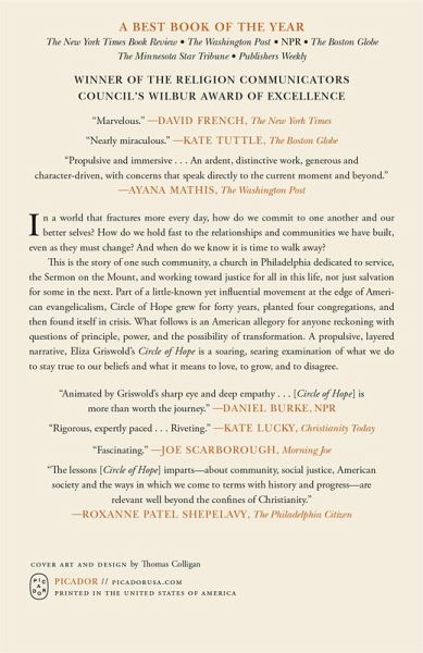 A National Book Award Finalist Named a Best Book of the Year by The New York Times, The Washington Post, The New Yorker, NPR, The Minnesota Star Tribune, and Publishers Weekly "Glows on every page . . . nearly miraculous." -The Boston Globe "Marvelous." -The New York Times From the Pulitzer Prize winner Eliza Griswold, Circle of Hope is an intimate portrait of a church, its radical mission, and its riveting crisis. "The revolution I wanted to be part of was in the church." Americans have been leaving their churches. Some drift away. Some stay home. And some have been searching for-and finding-more authentic ways to find and follow Jesus. This is the story of one such "radical outpost of Jesus followers" dedicated to service, the Sermon on the Mount, and working toward justice for all in this life, not just salvation for some in the next. Part of a little-known yet influential movement at the edge of American evangelicalism, Philadelphia's Circle of Hope grew for forty years, planted four congregations, and then found itself in crisis. The story that follows is an American allegory full of questions with urgent relevance for so many of us, not just the faithful: How do we commit to one another and our better selves in a fracturing world? Where does power live? Can it be shared? How do we make "the least of these" welcome? Building on years of deep reporting, the Pulitzer Prize winner Eliza Griswold has crafted an intimate, immersive, tenderhearted portrait of a community, as well as a riveting chronicle of its transformation, bearing witness to the ways a deeply committed membership and their team of devoted pastors are striving toward change that might help their church survive. Through generational rifts, an increasingly politicized religious landscape, a pandemic that prevented gathering to worship, and a rise in foundation-shaking activism, Circle of Hope tells a propulsive, layered story of what we do to stay true to our beliefs. It is a soaring, searing examination of what it means for us to love, to grow, and to disagree.