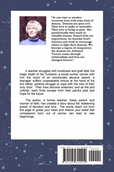 A teacher struggles with loneliness and grief after the tragic death of her husband; a social worker carries with him the scars of an emotionally abusive parent; a teenager suffers unspeakable torture at the hand of his evil father; parents struggle to cope with the loss of their only child. Their lives become entwined, and as the plot unfolds, each finds escape from their painful past and hope for the future. The author, a former teacher, foster parent, and woman of faith, has created a story about the redeeming power of faith and love. The words reach out from the page to grasp your heart and restore your belief that compassion born out of sorrow can lead to new beginnings.
