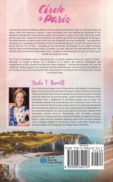 Honora Blanche Favre had it all: Beauty, Brains, Friends, Family and Riches. Until one day Life slaps her down. Hard. She becomes a pariah, a loser overnight; even her parents are ashamed of her. Napoleon Bonaparte's revolutionary system of education created more than 100 years before Honora was born, makes her into a failure at the tender age of 18. She is powerless to change it. The belle femme is exiled forever from the only thing she has ever worked for - her education and going to a prestigious University, as all her friends are doing. In a panic, She bolts from her family and her life in Paris - escaping to the Normandy countryside. While traveling through Normandy's ancient, spectacular places like le Bec-Hellouin and Mont Saint Michel, Honora is pulled into a cyclone of romance, intrigue, danger and personal achievement. Honora finds something deep inside of herself: courage, self-love and self-determination. She realizes there is a survivor living inside of her. A fighter. A tenacious girl that just won't give up on herself and those she loves. The Circle is complete when a shocking turn of events compels Honora to return to Paris - although no longer a failure, nor a burden, nor a victim. She returns triumphant and independent to face a future that she has never imagined - carrying the promise of a new life inside her, taking charge of her parent's law firm administration and becoming the stalwart of her family, as they face accusations that could destroy everything that the Favres have worked for all their lives.