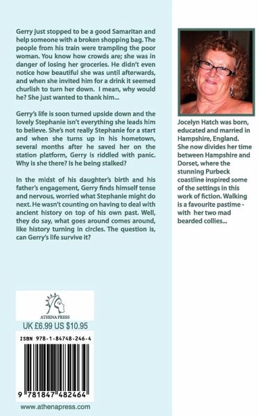 Gerry just stopped to be a good Samaritan and help someone with a broken shopping bag. The people from his train were trampling the poor woman. You know how crowds are; she was in danger of losing her groceries. He didn't even notice how beautiful she was until afterwards, and when she invited him for a drink it seemed churlish to turn her down. I mean, why would he? She just wanted to thank him... Gerry's life is soon turned upside down and the lovely Stephanie isn't everything she leads him to believe. She's not really Stephanie for a start and when she turns up in his hometown, several months after he saved her on the station platform, Gerry is riddled with panic. Why is she there? Is he being stalked? In the midst of his daughter's birth and his father's engagement, Gerry finds himself tense and nervous, worried what Stephanie might do next. He wasn't counting on having to deal with ancient history on top of his own past. Well, they do say, what goes around comes around, like history turning in circles. The question is, can Gerry's life survive it?