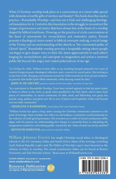 What if Christian worship took place as a conversation at a round table spread with elements of earth's gifts of nurture and beauty? This book describes such a practice--Roundtable Worship--and lays out a fresh and challenging theological foundation for it. Central to this foundation is the struggle to reconstruct the images of governance and justice that have always lain at the heart of a worship shaped by biblical traditions. Drawing on the practice of circle conversations at the heart of movements for reconciliation and restorative justice, Everett presents a theological vision rooted in biblical covenant-making, a social image of the Trinity, and an understanding of the church as ""the covenanted public of Christ's Spirit."" Roundtable worship provides a hospitable setting where people can begin to give deeper voice to their life, listen appreciatively to each other's longing for reconciliation, and anticipate in imagination and action a renewed public life beyond the angry and violent polarizations of our age.
