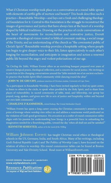 What if Christian worship took place as a conversation at a round table spread with elements of earth's gifts of nurture and beauty? This book describes such a practice--Roundtable Worship--and lays out a fresh and challenging theological foundation for it. Central to this foundation is the struggle to reconstruct the images of governance and justice that have always lain at the heart of a worship shaped by biblical traditions. Drawing on the practice of circle conversations at the heart of movements for reconciliation and restorative justice, Everett presents a theological vision rooted in biblical covenant-making, a social image of the Trinity, and an understanding of the church as ""the covenanted public of Christ's Spirit."" Roundtable worship provides a hospitable setting where people can begin to give deeper voice to their life, listen appreciatively to each other's longing for reconciliation, and anticipate in imagination and action a renewed public life beyond the angry and violent polarizations of our age.
