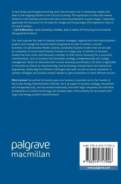 This book explores the need to develop business strategies, organise and fund transformation projects and manage the transformation programme in order to further a circular economy. Circular Business Models outlines sustainable business models that can be used by companies to move transformation forward on a large scale. In addition to business models the book will cover and discuss a number of other factors necessary for a successful transformation, such as business and innovation strategy, entrepreneurship and change management. Including original interviews with circular economy practitioners, this book will be applicable to industries as diverse as manufacturing, food processing, transportation and mechanical engineering. Addressing the different challenges that meet circular economy visionaries, it outlines strategies and business models needed to gain momentum in these different sectors.