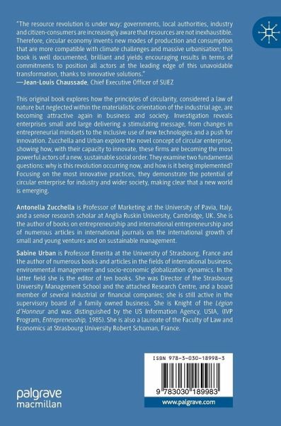 This original book explores how the principles of circularity, considered a law of nature but neglected within the materialistic orientation of the industrial age, are becoming attractive again in business and society. Investigation reveals enterprises small and large delivering a stimulating message, from changes in entrepreneurial mindsets to the inclusive use of new technologies and a push for innovation. Zucchella and Urban explore the novel concept of circular enterprise, showing how, with their capacity to innovate, these firms are becoming the most powerful actors of a new, sustainable social order. They examine two fundamental questions: why is this revolution occurring now, and how is it being implemented? Focusing on the most innovative practices, they demonstrate the potential of circular enterprise for industry and wider society, making clear that a new world is emerging.