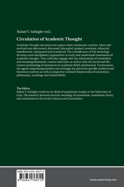 Academic thought circulates on a time-space continuum: authors, ideas and methods are discovered, discussed, discarded, praised, rewritten, refracted, transformed, transposed and translated. The contributors of this anthology develop cross-disciplinary approaches to study and understand translation of academic thought. They critically engage with the relationship of translation and meaning formation, context and style, as well as with the social and discursive positioning of translators in academic fields and beyond. Furthermore, the agents negotiating intellectual exchange are placed in specific political and historical contexts as well as respective scholarly frameworks of economics, philosophy, sociology and related fields.