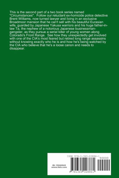 Someone is abducting Colorado's young women and after holding them in a cage and assaulting them, they turn up dead on the side of a road. Follow our hero as he pursues them with the help of his staff and his Eurasian wife's family who are related to the infamous Japanese Yakusa's.