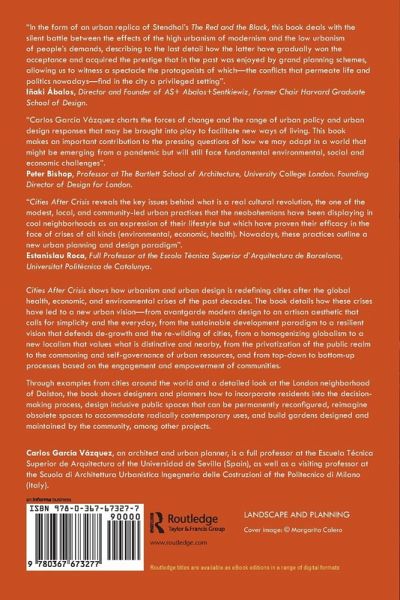 Cities After Crisis shows how urbanism and urban design is redefining cities after the global health, economic, and environmental crises of the past decades. The book details how these crises have led to a new urban vision-from avantgarde modern design to an artisan aesthetic that calls for simplicity and the everyday, from the sustainable development paradigm to a resilient vision that defends de-growth and the re-wilding of cities, from a homogenizing globalism to a new localism that values what is distinctive and nearby, from the privatization of the public realm to the commoning and self-governance of urban resources, and from top-down to bottom-up processes based on the engagement and empowerment of communities. Through examples from cities around the world and a detailed look at the London neighbourhood of Dalston, the book shows designers and planners how to incorporate residents into the decision-making process, design inclusive public spaces that can be permanently reconfigured, reimagine obsolete spaces to accommodate radically contemporary uses, and build gardens designed and maintained by the community, among other projects.