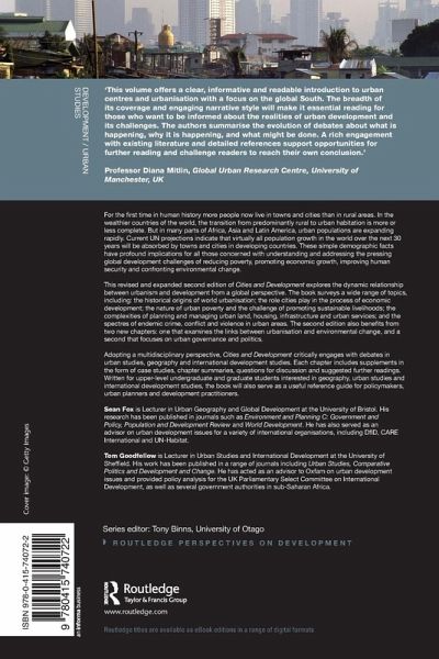 For the first time in human history more people now live and towns and cities than in rural areas. In the wealthier countries of the world, the transition from predominantly rural to urban habitation is more or less complete. But in many parts of Africa, Asia and Latin America, urban populations are expanding rapidly. Current UN projections indicate that virtually all population growth in the world over the next 30 years will be absorbed by towns and cities in developing countries. These simple demographic facts have profound implications for those concerned with understanding and addressing the pressing global development challenges of reducing poverty, promoting economic growth, improving human security and confronting environmental change. This revised and expanded second edition of Cities and Development explores the dynamic relationship between urbanism and development from a global perspective. The book surveys a wide range of topics, including: the historical origins of world urbanization; the role cities play in the process of economic development; the nature of urban poverty and the challenge of promoting sustainable livelihoods; the complexities of managing urban land, housing, infrastructure and urban services; and the spectres of endemic crime, conflict and violence in urban areas. This updated volume also contains two entirely new chapters: one that examines the links between urbanisation and environmental change, and a second that focuses on urban governance and politics. Adopting a multidisciplinary perspective, the book critically engages with debates in urban studies, geography and international development studies. Each chapter includes supplements in the form of case studies, chapter summaries, questions for discussion and suggested further readings. The book is targeted at upper-level undergraduate and graduate students interested in geography, urban studies and international development studies, as well as policy makers, urban planners and development practitioners.