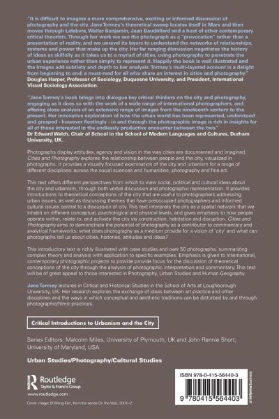Cities and Photography discusses the relationship between people and the city, visualized in photographs. It explores how photographs display attitudes, agency and vision in the way a city is documented and imagined. It provides a visually focused examination of the city and urbanism for a range of different disciplines - across the social sciences and humanities, photography and fine art. This book offers different perspectives from which to view social, political and cultural ideas about the city. It provides introductions to the theories useful to photographers addressing issues relating to urbanism, and to key photographic themes that inform cultural issues central to a discussion of urbanism (e.g. the street, the everyday, social conditions). A series of case studies, featuring international and contemporary photographic projects, provides a means with which to examine a range of issues, for example: regeneration and displacement, power and the institution, visions of modernity and post-modernity, psycho-geographical space. Cities and Photography interprets the city as a space that we inhabit on different conceptual and physical levels, and gives emphasis to how people operate within, relate to, and activate the city via construction, habitation and disruption.