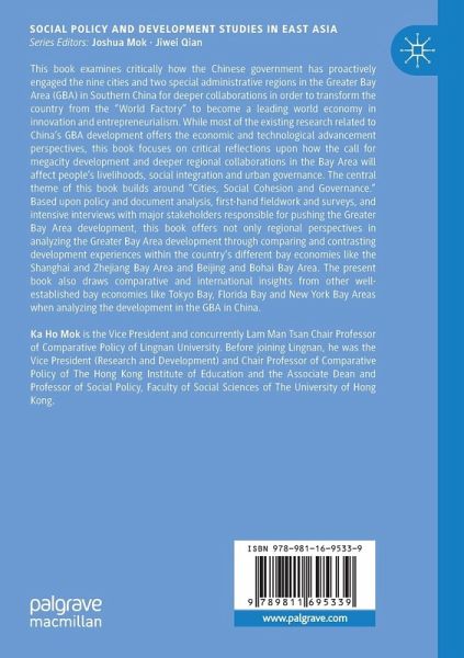 This book examines critically how the Chinese government has proactively engaged the nine cities and two special administrative regions in the Greater Bay Area (GBA) in Southern China for deeper collaborations in order to transform the country from the "World Factory" to become a leading world economy in innovation and entrepreneurialism. While most of the existing research related to China's GBA development offers the economic and technological advancement perspectives, this book focuses on critical reflections upon how the call for megacity development and deeper regional collaborations in the Bay Area will affect people's livelihoods, social integration and urban governance. The central theme of this book builds around "Cities, Social Cohesion and Governance." Based upon policy and document analysis, first-hand fieldwork and surveys, and intensive interviews with major stakeholders responsible for pushing the Greater Bay Area development, this book offers not only regional perspectives in analyzing the Greater Bay Area development through comparing and contrasting development experiences within the country's different bay economies like the Shanghai and Zhejiang Bay Area and Beijing and Bohai Bay Area. The present book also draws comparative and international insights from other well- established bay economies like Tokyo Bay, Florida Bay and New York Bay Areas when analyzing the development in the GBA in China.