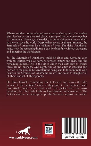 When a sudden, unprecedented event causes a heavy rain of countless giant leeches across the small globe, a group of heroes come together to summon an obscure, ancient deity to bestow his powers upon them so they can save the world. Despite the success of the summoning, the Sentinels of Anathema lose millions of lives. The deity, Anathema, relays how the remaining humans can live blissfully without damaging and angering the world again. So, the Sentinels of Anathema build 35 cities and surround each with tall curtain walls as barriers between nature and man, and the remaining humans live in the cities under their authority to ensure there are no mishaps. One night, one of the cities is attacked and burned to the ground by a mysterious being akin to the Sentinels, who believes the Sentinels of Anathema are evil and seeks to slaughter all of them and all of their people. He films himself committing the holocaust and leaves the film in one of the Sentinels' cities so they find it. The Sentinels keep this attack under wraps and send The Jackal after the mass murderer, but this only leads to him planting information in The Jackal's mind in an attempt to pit the Sentinels against each other.