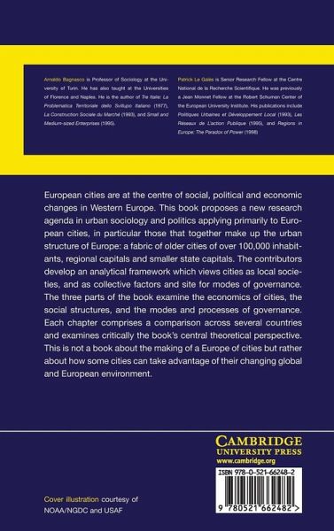 Introduction Arnaldo Bagnasco and Patrick Le Galès; 1. European cities in the world economy Pierre Veltz; 2. Spatial images of European urbanisation Giuseppe Dematteis; 3. Segregation, class and politics in large cities Edmond Preteceille; 4. Social structure in medium-sized cities compared Marco Oberti; 5. Different cities in different welfare states Juhani Lehto; 6. Social movements in European cities: transitions from the 1970s to the 1990s Margit Mayer; 7. The construction of urban services models Dominique Lorrain; 8. Private sector interests and urban governance Patrick Le Galés.