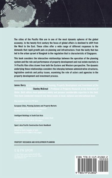 The cities of the Pacific Rim are in one of the most dynamic spheres of the global economy. In the twenty first century the focus of global affairs is destined to shift from the West to the East. These cities offer a wide range of different responses to the demands that rapid growth puts on planning and infrastructure : from the laxity that has lead to the urban sprawl of Bangkok to the regulation that is characteristic of Singapore. This book considers the interactive relationships between the operation of the planning system and the role and performance of property development and real estate markets in 14 Pacific Rim cities drawn from both the Eastern and Western perspective. The dynamic underlying these relationships considers the interplay between administrative structures, legislative controls and policy issues examining the role of actors and agencies in the property development and investment process.