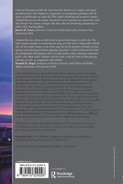 This is an up-to-date and topical treatment of how six major cities in Europe, North America and Asia are coping with the new demands on urban government. Population expansion, the migration of new peoples and disparities between cities and suburbs are longstanding features of the urban crisis. Today, city governments also face demands for popular participation and better public services while they struggle to position themselves in the new world economy. While each of the cities is located in its unique historical setting, the emphasis of the book is upon the common dilemmas raised by major planning problems and the search for more suitable approaches to governance and citizen involvement. A principal theme is the re-engineering of institutional structures designed to foster local responsiveness and popular participation. The discussion is set in the context of the globalizing forces that have impacted to different degrees, at different times, upon London, Tokyo, Toronto, Berlin, Hyderabad and Atlanta. Cities in Transition is a major and original addition to the comparative literature on urban governance.