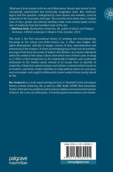 This book is the first transnational history of rambling and mountaineering. Focussing on the critical turn-of-the-century era, it offers new insights into alpine development, attitudes to danger, cultures of time, internationalism and domesticity in the outdoors. It charts an emerging group of mass tourist activities, and argues that these thousands of walkers and climbers can only be understood within the context of the urban cultures from which most of them came. In doing so, it offers a fresh perspective on the relationship of alpinists and countryside enthusiasts to the modern world. Instead of an escape from or rejection of modernity, it finds that upland trampers and climbers contested what it meant to be modern, used those modern identities to make political claims on rural space and rural people, and sought to define what a more modern future society should be like.