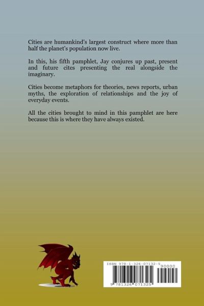 Cities are humankind's largest construct and are where more than half the planet's population now live. In this, his fifth poetry pamphlet, Jay Arr conjures up past, present and future cites presenting the real alongside the imaginary. The cities serve as metaphors for theories, news reports, urban myths, the exploration of relationships and the joy of everyday events. All the cities brought to mind in this pamphlet are here because this is where they have always existed.