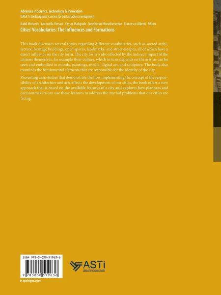 This book discusses several topics regarding different vocabularies, such as sacred architecture, heritage buildings, open spaces, landmarks, and street escapes, all of which have a direct influence on the city form. The city form is also affected by the indirect impact of the citizens themselves, for example their culture, which in turn depends on the arts, as can be seen and embodied in morals, paintings, media, digital art, and sculpture. The book also examines the fundamental elements that are responsible for the identity of the city.