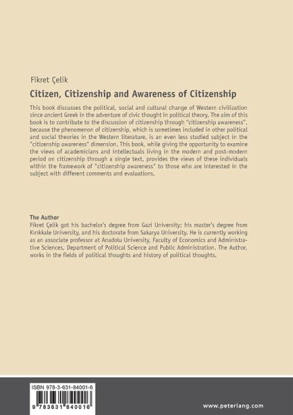 This book discusses the political, social and cultural change of Western civilization since ancient Greek in the adventure of civic thought in political theory. The aim of this book is to contribute to the discussion of citizenship through "citizenship awareness", because the phenomenon of citizenship, which is sometimes included in other political and social theories in the Western literature, is an even less studied subject in the "citizenship awareness" dimension. This book, while giving the opportunity to examine the views of academicians and intellectuals living in the modern and post-modern period on citizenship through a single text, provides the views of these individuals within the framework of "citizenship awareness" to those who are interested in the subject with different comments and evaluations.