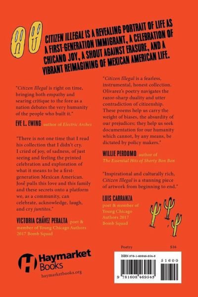 Citizen Illegal is a revealing portrait of life as a first generation immigrant, a celebration of Chicano joy, a shout against erasure, and a vibrant re-imagining of Mexican American life.