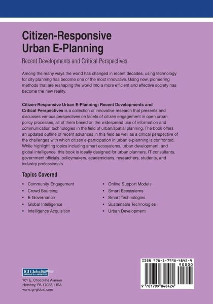 "This book discusses various perspectives on facets of citizen engagement in open urban policy processes, all of them based on the widespread use of information and communication technologies in the field of urban/spatial planning. The book offers an updated outline of recent advances in this field as well as a critical perspective of the challenges with which citizen e-participation in urban e-planning is confronted"--
