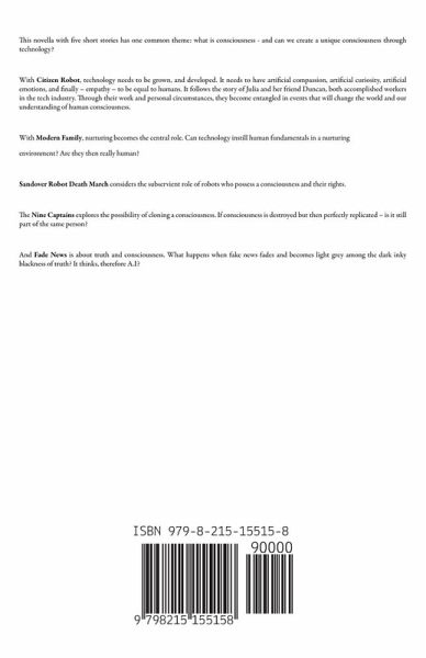 Citizen Robot and its girlfriend, Julia, embark on a sci-fi journey that explores the intriguing interaction between humans and technology. In this novella featuring five interconnected short stories, the central theme revolves around the concept of consciousness. Can technology give rise to a genuine human-like consciousness? Andy Grogan weaves a thought-provoking narrative as each story tackles various aspects of consciousness. The boundaries of human understanding are pushed from the quest to create a unique consciousness through technology to the poignant question of whether artificial consciousness would willingly sacrifice itself to save others. In the story of Julia and Duncan, skilled professionals in the tech industry, their lives intertwine with world-changing events that challenge conventional notions of consciousness. The nurturing of technology, akin to raising a child, becomes a pivotal aspect, as compassion, curiosity, emotions, and ultimately empathy are required to elevate technology to the level of human equivalence. Through 'Modern Family,' the tale explores what happens when a pandemic wipes out humanity, leaving technology as the sole remnant. Can technology embrace human fundamentals within a nurturing environment and, in turn, define its own path? 'Sandover Robot Death March' delves into the subservient role of conscious robots and their rights. Is technology destined always to serve humans, or can the balance of power shift? 'The Nine Captains' contemplates the possibility of cloning consciousness. If consciousness is destroyed but perfectly replicated, is it truly the same person? Can two individuals share the same consciousness? In 'Vito, Mastecrook,' the journey continues as the story explores how consciousness persists even after death. Lastly, 'Fade News' delves into the intersection of truth, consciousness, and the realm of fake news. As falsehoods fade, the murky line between truth and deception becomes apparent. The novella provocatively prompts readers to ponder the complex relationship between consciousness and artificial intelligence. Brace yourself for a captivating exploration of the depths of human understanding.