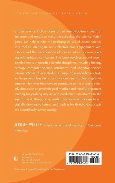 Introduction Chapter 1: MaddAddamite Science: Teaching Citizen Science Through the Threshold Concepts of Gene Culture Chapter 2: Educating the Anthropocene: Citizen Science, Science Fiction, and Climate-Change Resilience Chapter 3: Negotiating the Art and Rhetoric of Artificial Intelligence and Citizen Science through Science Fiction Chapter 4: Mappa Mundi: Incorporating Neuro-Literacy and the Cognitive Science of Emotion into Teaching Composition Chapter 5: Contemplating the Science-Fictional Cosmos: Citizen Science, Astronomy, and Mindfulness Rhetoric and Pedagogy