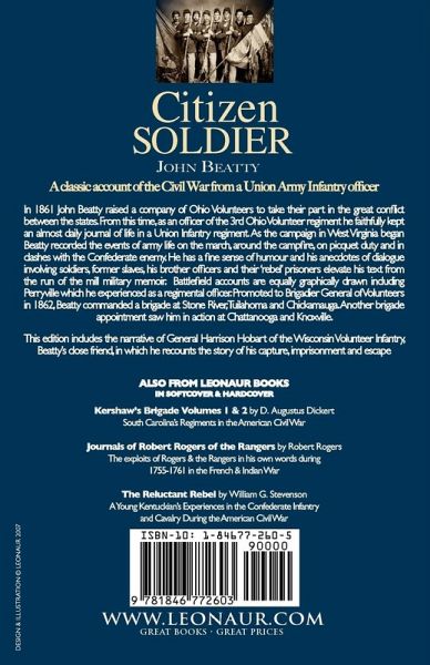 A classic account of the Civil War from a Union Army Infantry officer In 1861 John Beatty raised a company of Ohio Volunteers to take their part in the great conflict between the states. From this time, as an officer of the 3rd Ohio Volunteer regiment he faithfully kept an almost daily journal of life in a Union Infantry regiment. As the campaign in West Virginia began Beatty recorded the events of army life on the march, around the campfire, on picquet duty and in clashes with the Confederate enemy. He has a fine sense of humour and his anecdotes of dialogue involving soldiers, former slaves, his brother officers and their 'rebel' prisoners elevate his text from the run of the mill military memoir. Battlefield accounts are equally graphically drawn including Perryville which he experienced as a regimental officer. Promoted to Brigadier General of Volunteers in 1862, Beatty commanded a brigade at Stone River, Tuilahoma and Chickamauga. Another brigade appointment saw him in action at Chattanooga and Knoxville. This edition includes the narrative of General Harrison Hobart of the Wisconsin Volunteer Infantry, Beatty's close friend, in which he recounts the story of his capture, imprisonment and escape.