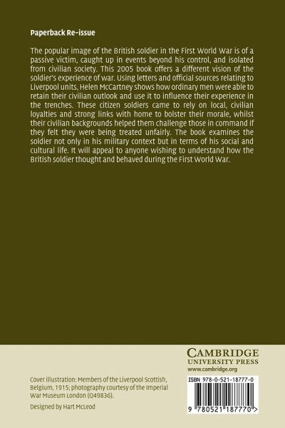 The popular image of the British soldier in the First World War is of a passive victim, caught up in events beyond his control, and isolated from civilian society. This book offers a different vision of the soldier's experience of war. Using letters and official sources relating to Liverpool units, Helen McCartney shows how ordinary men were able to retain their civilian outlook and use it to influence their experience in the trenches. These citizen soldiers came to rely on local, civilian loyalties and strong links with home to bolster their morale, whilst their civilian backgrounds helped them challenge those in command if they felt they were being treated unfairly. The book examines the soldier not only in his military context but in terms of his social and cultural life. It will appeal to anyone wishing to understand how the British soldier thought and behaved during the First World War.