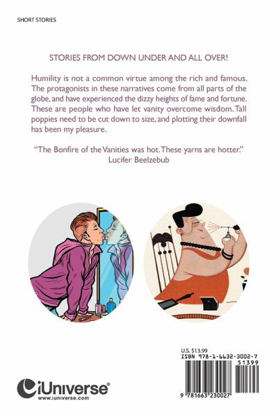 SHORT STORIES Stories from Down Under and all over! Humility is not a common virtue among the rich and famous. The protagonists in these narratives come from all parts of the globe, and have experienced the dizzy heights of fame and fortune. These are people who have let vanity overcome wisdom. Tall poppies need to be cut down to size, and plotting their downfall has been my pleasure. "The Bonfire of the Vanities was hot. These yarns are hotter." Lucifer Beelzebub