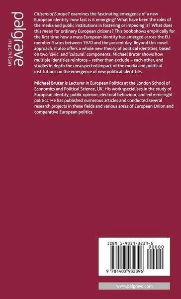 This book shows empirically for the first time how a mass European identity has emerged across the EU member states between 1970 and the present day. Beyond this novel approach, it also offers a whole new theory of political identities, based on two 'civic' and 'cultural' components. Michael Bruter shows how multiple identities reinforce - rather than exclude - each other, and studies in depth the unsuspected impact of the media and political institutions on the emergence of new political identities.