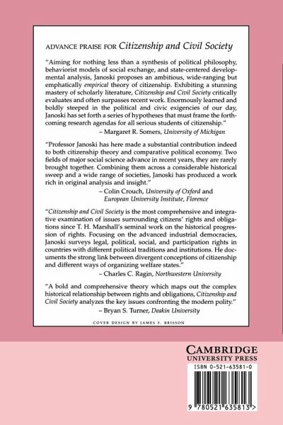 Rights and obligations are confusing. When people really want or need something they call it a right. Can they simply attach this word to anything they want? Can people disregard obligations with impunity? This book argues that they cannot. One must understand those relationships in specific ways to really know what can or can not be done with rights and obligations in public discourse and politics. They must create a web of interaction between citizens so that more long-term social investments may be made. Professor Janoski shows that individual rights protecting privacy, free speech, and legal access are more highly developed in social democratic countries than in liberal countries. On the other hand, obligations in those same social democratic countries are higher. On the whole, rights and obligations are in balance; or, you get what rights you pay for in terms of fulfilling obligations to the state and society.