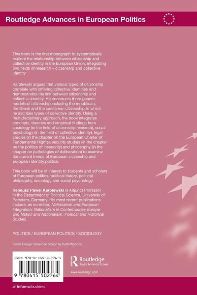 This book is the first monograph to systematically explore the relationship between citizenship and collective identity in the European Union, integrating two fields of research - citizenship and collective identity. Karolewski argues that various types of citizenship correlate with differing collective identities and demonstrates the link between citizenship and collective identity. He constructs three generic models of citizenship including the republican, the liberal and the caesarean citizenship to which he ascribes types of collective identity. Using a multidisciplinary approach, the book integrates concepts, theories and empirical findings from sociology (in the field of citizenship research), social psychology (in the field of collective identity), legal studies (in the chapter on the European Charter of Fundamental Rights), security studies (in the chapter on the politics of insecurity) and philosophy (in the chapter on pathologies of deliberation) to examine the current trends of European citizenship and European identity politics. This book will be of interest to students and scholars of European politics, political theory, political philosophy, sociology and social psychology.