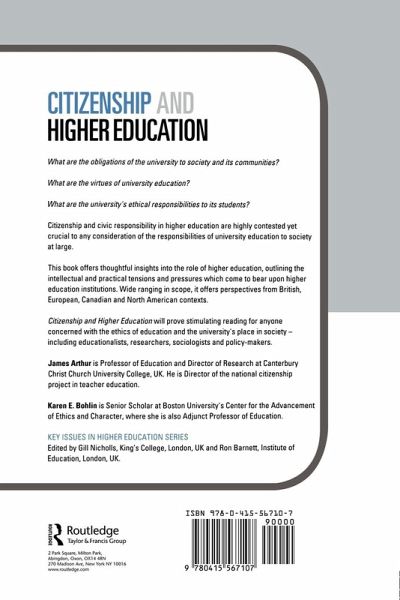 What are the obligations of the university to society and its communities? What are the virtues of university education? What are the university's ethical responsibilities to its students? The role of citizenship and civic responsibility in higher education is a highly contested yet crucial element of any consideration of the role of university in society. This book offers thoughtful insights into this role, outlining the intellectual and practical tensions and pressures which come to bear upon higher education institutions. Wide ranging in scope, it offers perspectives from British, European, Canadian and North American educational environments. Citizenship and Higher Education will prove stimulating reading for anyone concerned with the ethics of education and the university's place in society - including educationalists, researchers, sociologists and policy-makers.