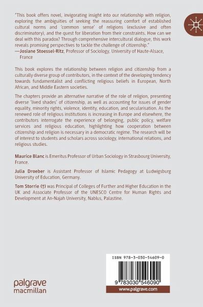 The chapters provide an alternative narrative of the role of religion, presenting diverse 'lived shades' of citizenship, as well as accounting for issues of gender equality, minority rights, violence, identity, education, and secularisation. As the renewed role of religious institutions is increasing in Europe and elsewhere, the contributors interrogate the experience of belonging, public policy, welfare services and religious education, highlighting how cooperation between citizenship and religion is necessary in a democratic regime. The research will be of interest to students and scholars across sociology, international relations, and religious studies.