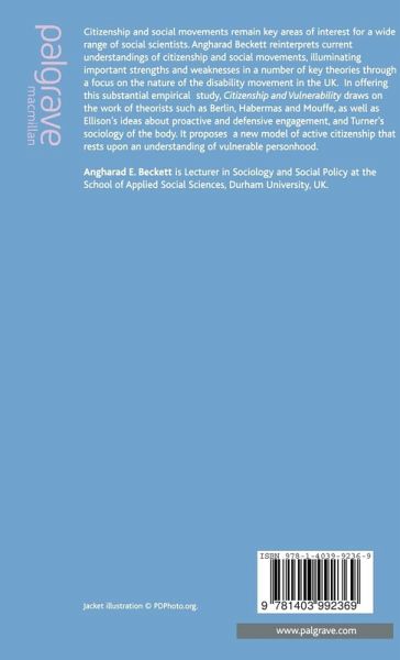 Drawing on new empirical research with disabled people in the UK, and considering the work of theorists such as Berlin, Habermas and Mouffe, Ellison's ideas of proactive and defensive engagement and Turner's 'sociology of the body', Beckett proposes a new model of 'active' citizenship that rests upon an understanding of 'vulnerable personhood'.