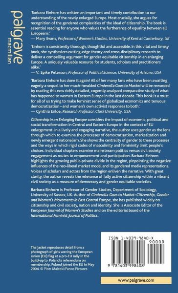 'Barbara Einhorn has written an important and timely contribution to our understanding of the newly enlarged Europe. Most crucially, she argues for a recognition of the gendered complexities of the idea of citizenship. The book is essential reading for anyone who values the furtherance of equality between all Europeans.' - Mary Evans, Professor of Women's Studies, University of Kent at Canterbury, UK