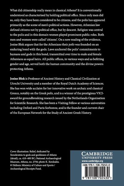 A highly original study arguing that Athenian citizenship was not just a political identity, but was in fact primarily a religious identity. Classical Athens saw itself as a community (polis) founded on its bond with the gods. Male and female citizens were equal heirs of this bond, in which the polis also anchored its laws.