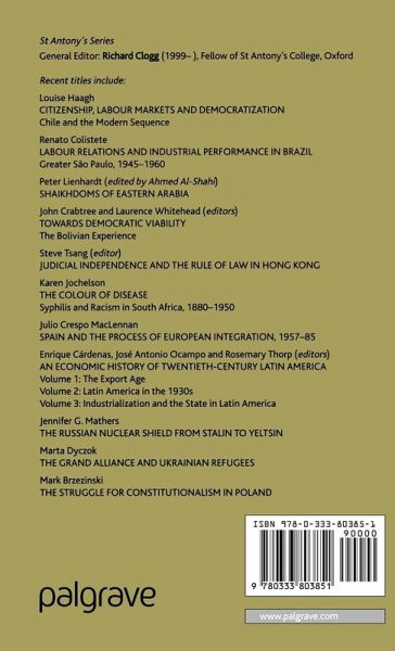 List of Tables List of Figures Acknowledgements Glossary of Abbreviations Introduction PART ONE: THEORETICAL ISSUES Citizenship and Democratization Human Resources and Market Reforms PART TWO: LABOUR POLITICS AND CHILE'S TRANSITION Business Leaders and Democracy's Limits Unions, Parties and the Sacrifice for Democracy The Transition to Democracy and the Enforcement of Markets PART THREE: SOCIAL CITIZENSHIP AND CHILE'S LABOUR REFORMS Democratic Legitimation and the New Labour Code That Was Not Training Policy and De-Centralisation Labour Relations and Investment in Workers Union Strength, Union History and Union Effects Appendices Select Bibliography Index