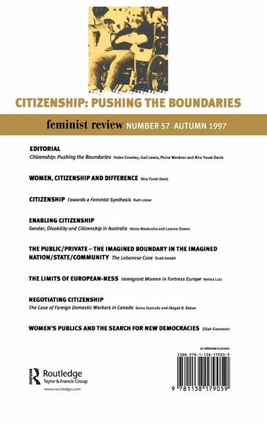 Brings together global perspectives and issues of citizenship. Covers feminist debates such as citizenship as a status bestowing rights and responsibilities, passive and active citizenship, and the public and private citizen.
