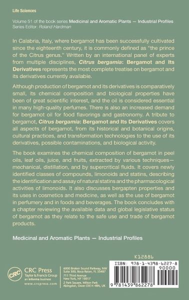 In Calabria, Italy, where bergamot has been successfully cultivated since the eighteenth century, it is commonly defined as "the prince of the Citrus genus." Written by an international panel of experts from multiple disciplines, Citrus bergamia: Bergamot and its Derivatives represents the most complete treatise on bergamot and its derivatives currently available. Although production of bergamot and its derivatives is comparatively small, its chemical composition and biological properties have been of great scientific interest and the oil is considered essential in many high-quality perfumes.…mehr